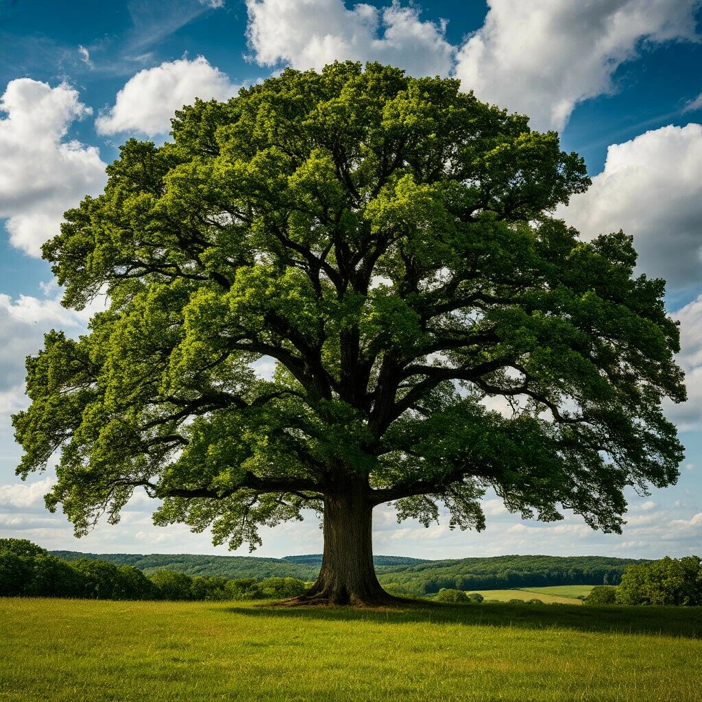могучий, да не простой, а с кроной столь густой, что и солнца не видно.