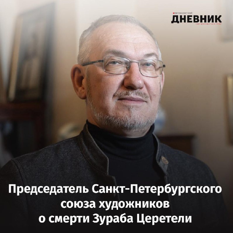 🔖 Андрей Базанов: «Церетели — целая эпоха в истории искусства» Сегодня на 92-м году жизни скончался скульптор Зураб Церетели. Прощание с ним должно состояться завтра в храме Христа Спасителя в Москве. Глубочайшие соболезнования родным и близким скульптора от имени Санкт-Петербургского союза художников выразил председатель правления общественной организации Андрей Базанов. «Церетели — это целая эпоха в истории искусства. Это был художник, обладающий неуемной творческой энергией. Почтение вызывает его труд как президента Российской академии художеств, мецената и общественного деятеля. Я уверен, что наследие великого скульптора многие годы будет служить ориентиром для будущих поколений профессиональных художников», — сказал Андрей Базанов. В 2019 году Зураб Церетели давал интервью нашему изданию. Он рассказал, остались ли в стране и Петербурге талантливые скульпторы; смог бы памятник Петру I на Москве-реке прижиться на Неве; и достоин ли памятник императору Александру III находиться н