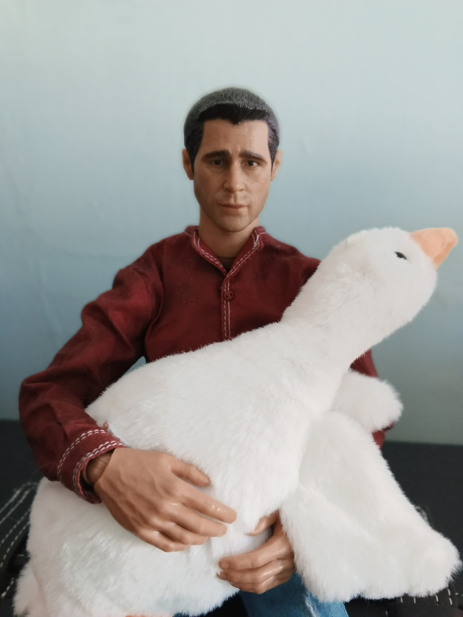 Не помню, у кого из сохоббитов, но подсмотрел идею собирательства Мёбиуса. Коллекции, так сказать, внутри коллекции. ~~~ Теперь у подчёркнуто одинокого, как крокодил Гена, Падди имеется друг — ростовой гусь. Уморительная концепция; кто бы знал, что этих обнимашек начнут делать в размер брелоков, чтобы и экшены могли сублимировать эмоциональное выгорание? #onesixthscale #hugs #pets #шестоймасштаб #ирландщина #гусьобнимусь