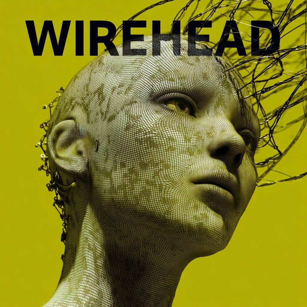 Создано на основе запроса: A logo spelling "WIREHEAD" over a chartreuse image of wireheading