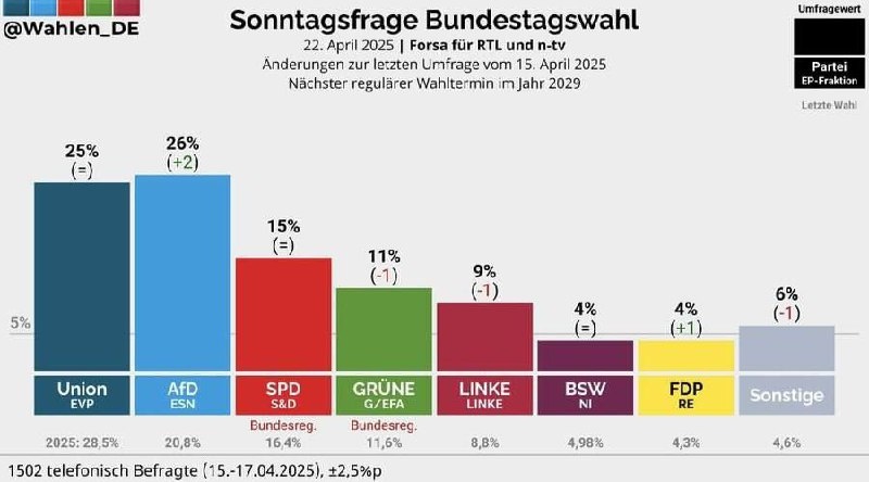 Альтернатива для Германии снова подросла. Пора власти что-то делать. Ну, рейхстаг, поджечь, концлагеря открыть. Опыт же имеется, его не пропьёшь.