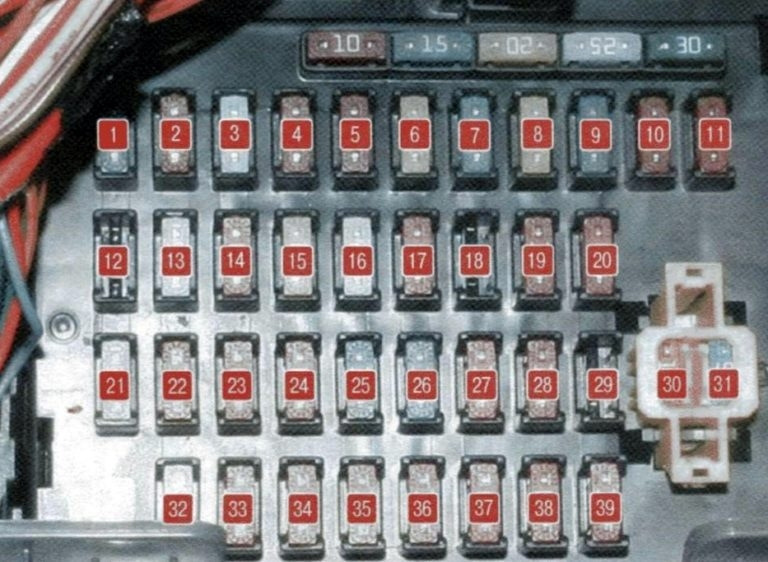 ❗Предохранители 34 и 35 отвечают за передние габариты и подсветку приборной панели; 2. Под капотом. Расположен он в левой части моторного отсека. Общий вид блока под капотом