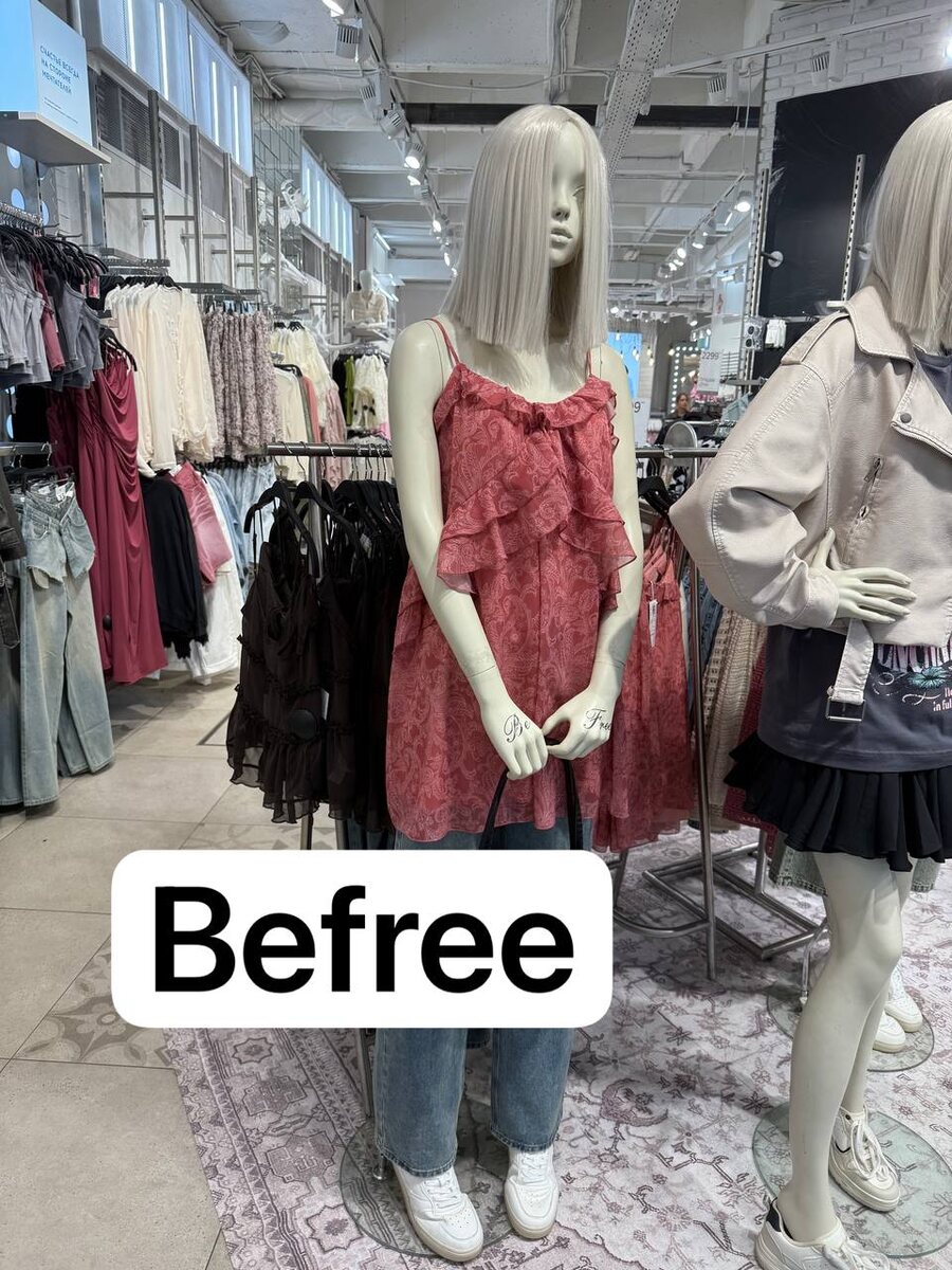 Проходила мимо Befree, если честно хотела, пощупать их коллекцию с брендом Mur Но у нас очень скромный ассортимент, этой коллаборации нет. Джинсы с имитацией баски/юбки , если вы не прямо модница или планируете носить с чем-то навыпуск, то лучше возьмите более классическую модель Вот такие например Джинсы змея 🐍 Еще понравились молочные клеш Бермуды прямо 🔝 Рубашка ажурная Платье комбинация Футболка с бахромой
