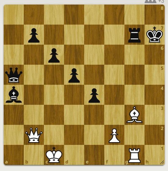 У черных 3 лишние пешки. У черных явный материальный перевес. Однако ход белых, белые начинают и выигрывают, получают материальный перевес. Более интересная задача тут>>>> Решение смотрите далее. 1. Белые бьют ферзем на "g7" 1. ................................ черные бьют королем на "g7". 2. Белые дают вскрытый шах слоном на "с7" и далее забирают черного ферзя. В итоге, у белых лишняя ладья и выигранная позиция.