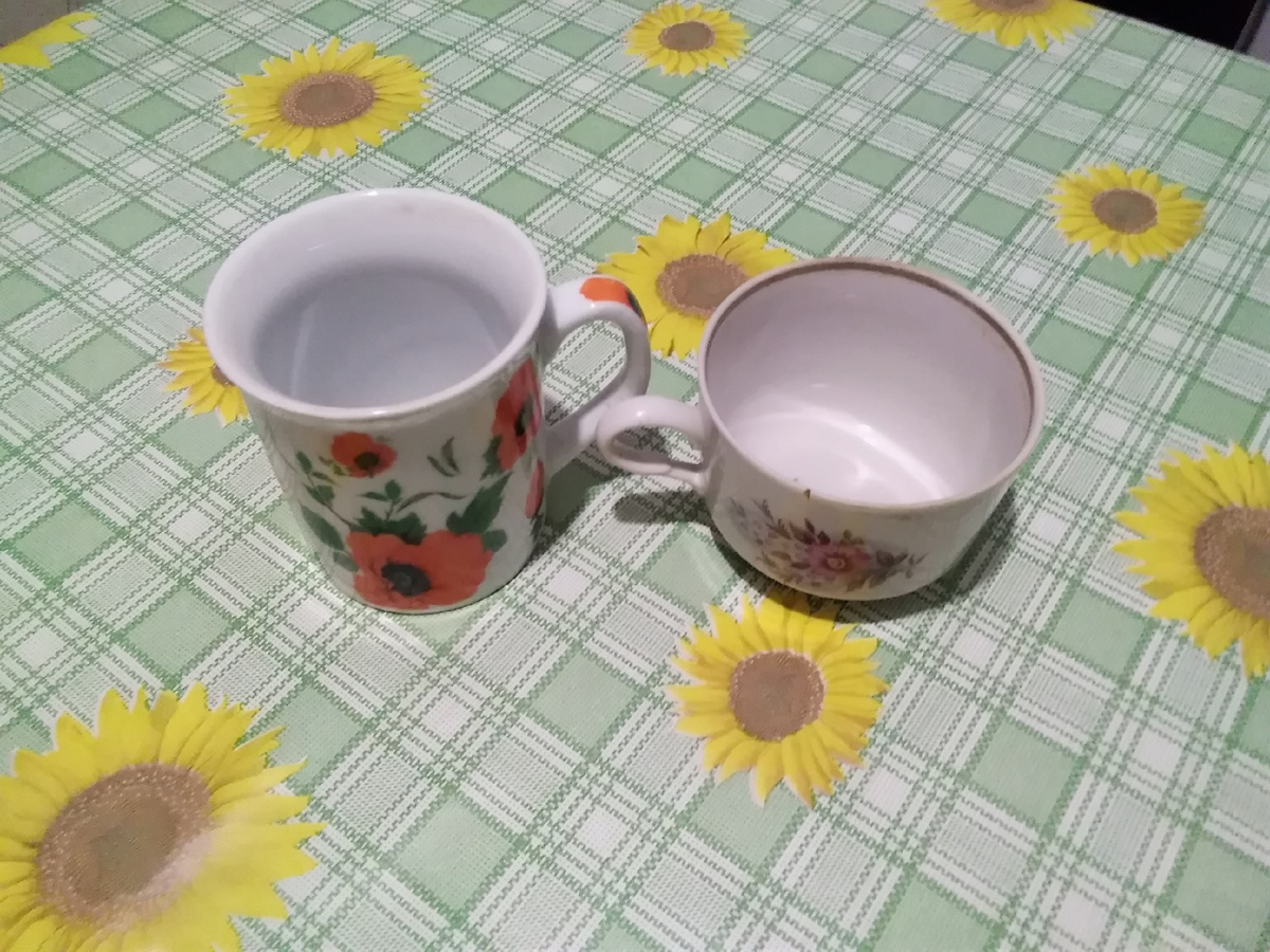 Здравствуйте, читатель! Сегодня мы отправились в поход! Но вовсе не на дачу, если вы подумали об этом! Решили, что нам совершенно необходимы новые чайные чашки потому, что старые уже...старые!😜 Легких путей мы искать не стали и пошли в посудный магазин пешком. А дорога туда дооолгая! Перелесками, лесами, погостами...😁 Шли все, даже Пуська с нами, хоть и усердно заворачивала к дому на каждом углу. Пришлось держать за поводок железной рукой! В магазине я спросила разрешения пофотографировать и получив добро радостно защелкала заветной кнопочкой📷 Вот на этой витрине мы с мамой выбрали себе чашечки. Изначально хотели купить сервиз, но во-первых сервизы эти были какие-то...грустные, а во-вторых, мы не смогли подобрать вид, который бы понравился всем троим. Решили брать каждому свое. Я остановилась на однотонных, маме понравилась с полосочками, а Рома захотел узбекские пиалы. (Они на другой витрине были) Пиалы сделаны на семейном предприятии, а мои и мамину кружки изготовили в Китае. Ну,