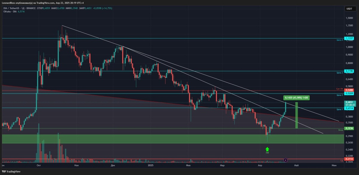 В ответ на пост #DIA 💵1я цель, done✔️ ⚠️Буквально прошил 1ю цель! Полет может продолжиться до 2й цели в течении суток. Если так произойдет, то буду фиксировать и ловить ТВХ на откате!! P.s. сопровождайте сделки и берегите свой профит!!!