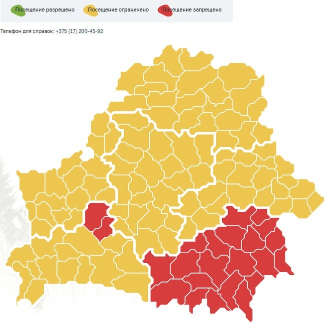 Во всей Гомельской области запрещено посещение лесов — Минлесхоз Также запреты введены в двух районах Брестской области — Барановичском и Ляховичском. По всей остальной стране действуют ограничения на посещение лесов. @SPUTNIKBY