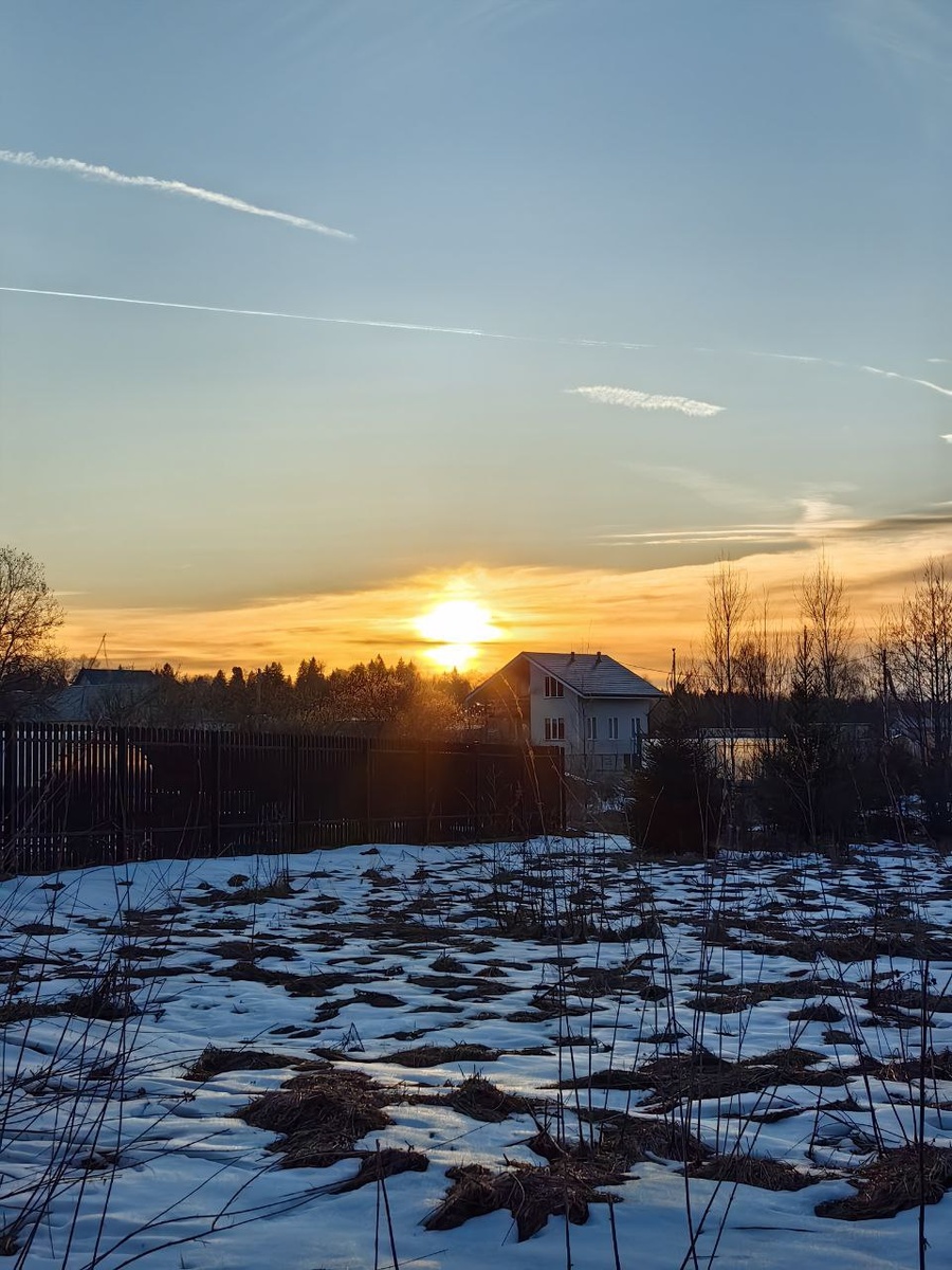 Весенний желтый закат (Комарово, Клин) #sky #blue #sunset #sun #yellow #white #grey #clouds #rural #landscape #Komarovo #Klin #spring #April #небо #голубое #закат #солнце #белые #желтые #серые #облака #сельский #пейзаж #Комарово #Клин #весна #апрель