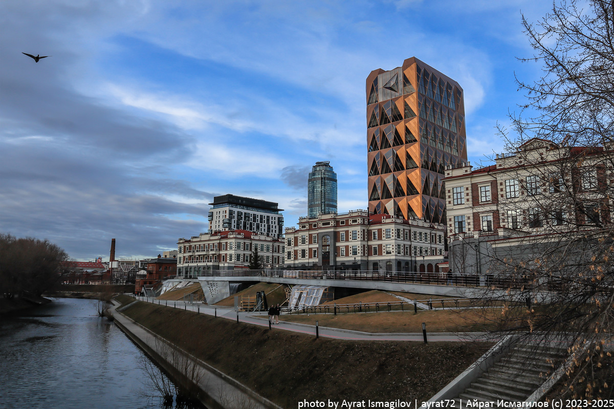 Тот самый случай, когда народное название становится единственным в обиходе. Штаб-квартира Русской медной компании еще на последних этапах строительства стала "ананасом". Ну правильно, кто ж будет пользоваться официальным названием: Даймонд Билдинг? В 2020 году в самом центре Екатеринбурга возвели современное офисное здание, разработанное командой знаменитого архитектора Нормана Фостера. Я показывал ранее его работы в Астане. Можно найти эти здания в моей заметке: В России это первое и единственное на настоящий момент произведение мастера. Кстати, Норман не принимал непосредственного участия в разработках. Кто меня читает, тот знает, что на моих страницах чаще можно увидеть архитектуру старинную. Современная меня совсем не радует. А что я хочу сказать конкретно про это здание? Начну с того, что оно меня не раздражает... Да ладно, скажу сразу: это первое современное здание, которое понравилось мне как само по себе, так и в сочетании с окружающей средой. Очень органично мне кажется. Прид