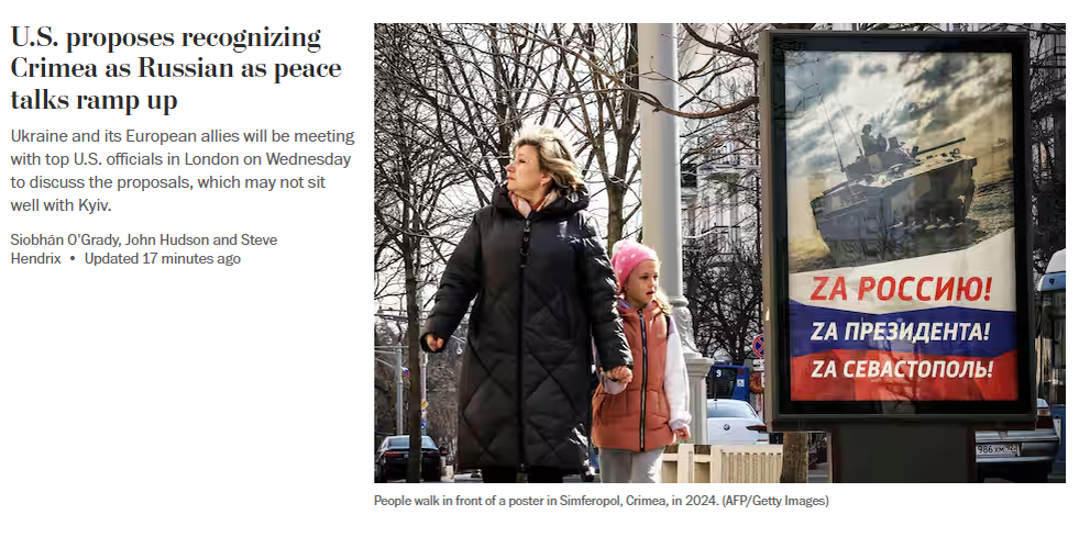 США предлагают признать Крым Российским по мере активизации мирных переговоров