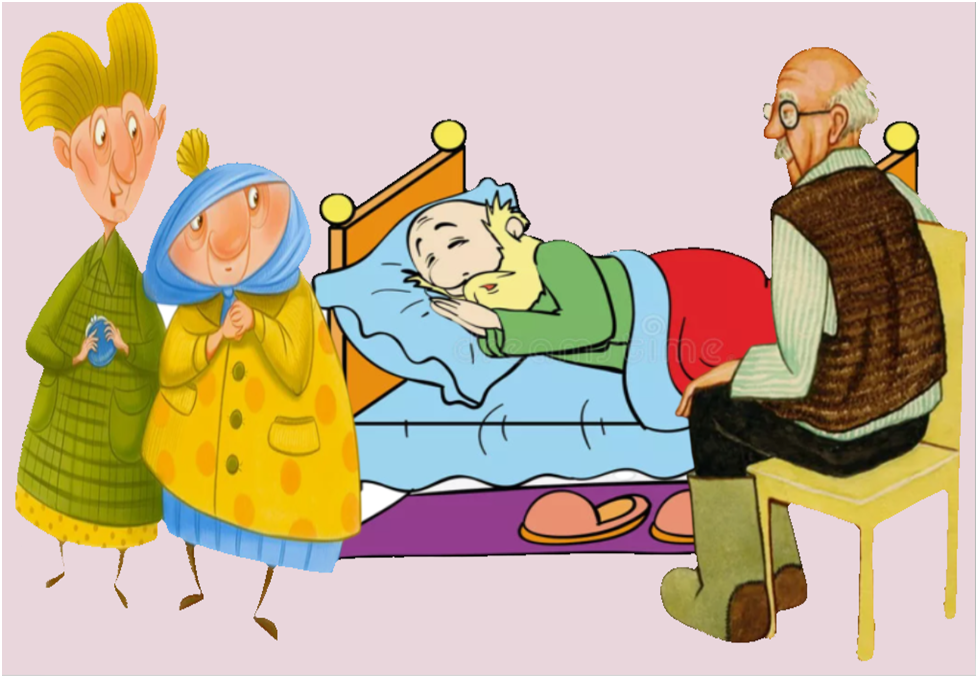 Тем временем дед Григорий добежал до дома друга и был весьма удивлён, тем, что дед Митрофан не лежит, а достаёт из холодильника малосольные огурцы и ещё кое-что к ним, ну, то, без чего они невкусные.