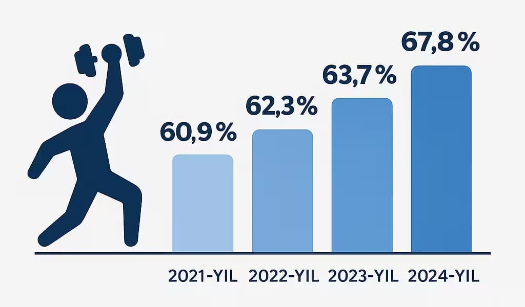 O‘zbekistonda jismoniy mashg‘ulotlar bilan shug‘ullanadigan shaxslar ulushi oshgani ma’lum qilindi. Yillar kesimida: ▪️2021 yil – 60,9 foiz; ▪️2022 yil – 62,3 foiz; ▪️2023 yil – 63,7 foiz; ▪️2024 yil – 67,8 foiz. @daryolive