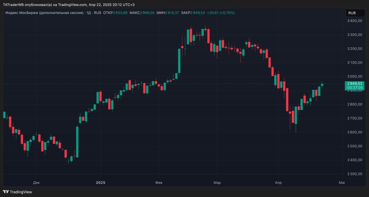 ❗️ ЗАКРЫЛИСЬ СИЛЬНО! Неужели 3000? ✅ Открывшись индекс поехал в закономерную и прогнозируемую коррекцию, про которую писал еще вчера. Подойдя к 2914 индекс поехал в отскок, причем изначально не очень большой, пока не подъехали новости, на которых индекс подкинули, да так, что закрылся он НАД 2950, на основной торговой сессии, сильной лонговой свечкой. Отсюда можно было бы легко предположить, что далее скорее всего будет рост индекса, однако новостной рост это большой нюанс, ибо если новостей не будет, все легко могут слить. Плюсом отскок сегодняшний получился НЕ совсем самостоятельный, ведь например Американские индексы и нефть также неплохо подрастали. 💯 Вот и получается, что да фактически есть лонговое закрытие, но образованно оно условным допингом, а значит сейчас лонговать будет немного опасно. В целом, по факту лонгового закрытия локально индекс может подрасти, в сторону 2970 - 2980, пока есть позитив от мирового фона, но НЕ думаю, что это продлится долго (опять таки закрытие с