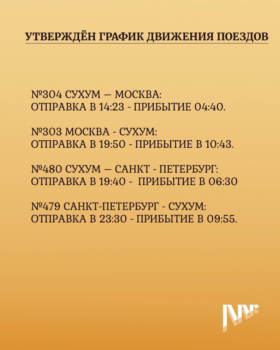 Утвержден график движения поездов в Сухум и из Сухума Апсныпресс | Instagram Facebook | Дзен ⚠️