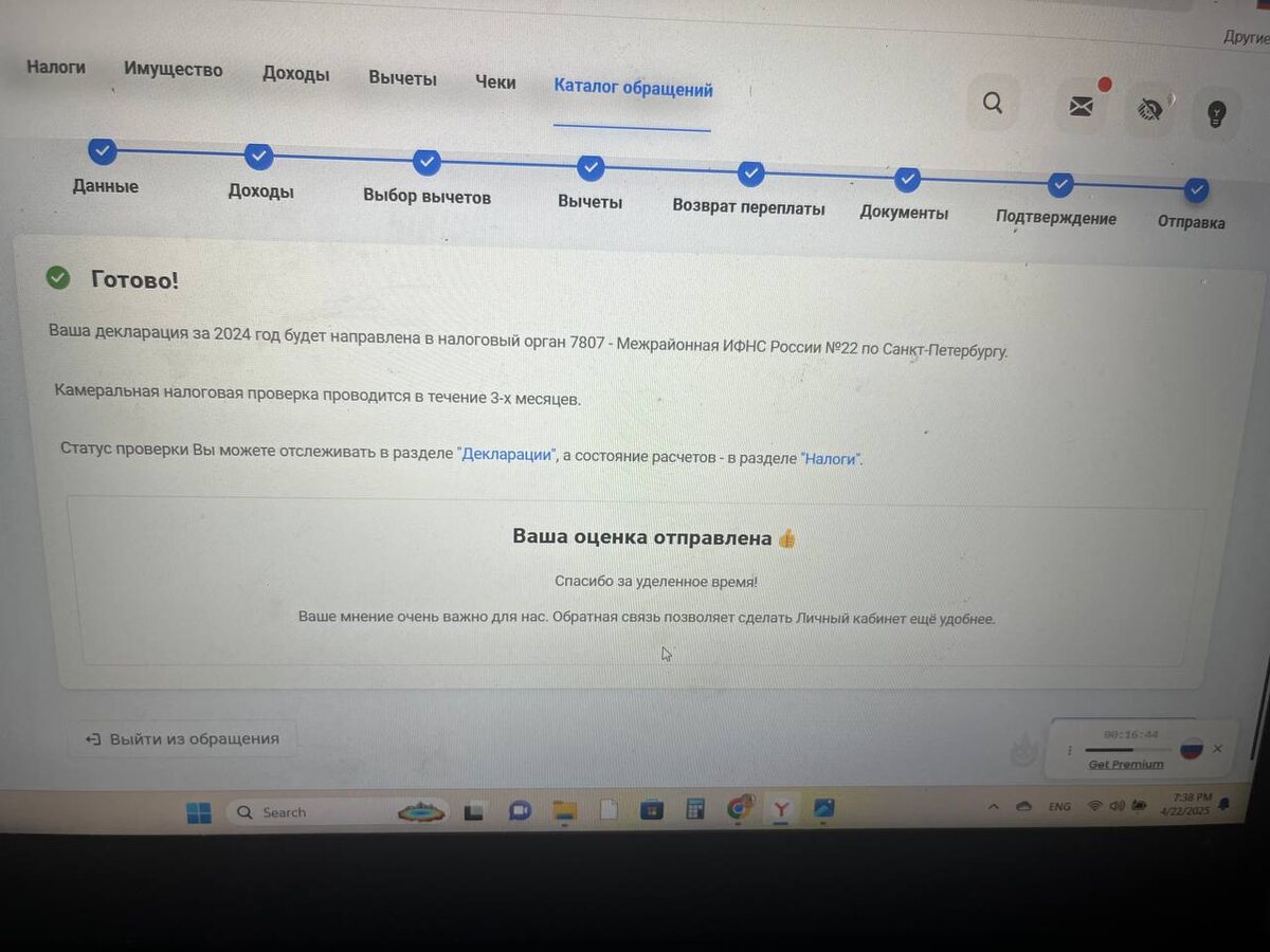 Ну что, друзья, налоговая ждёт! 😄 Я свою декларацию 3НДФЛ уже отправила