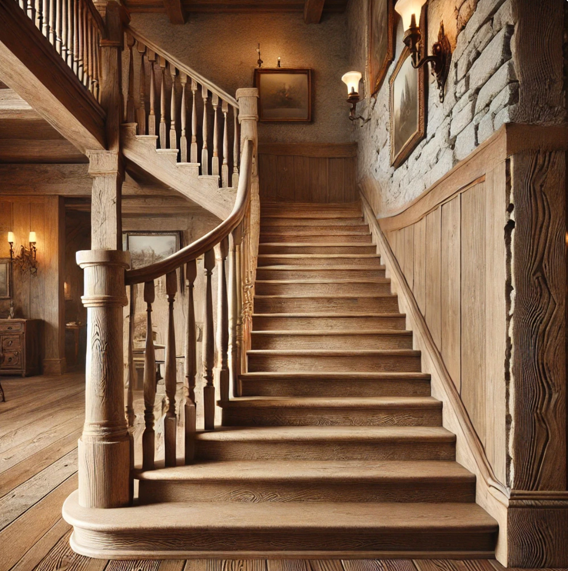 Обшивка лестницы под старину: стиль, который вне времени Хотите, чтобы лестница выглядела как из прошлого века, но служила как современная? Решение есть — обшивка лестницы под старину, которая позволяет объединить эффект благородного возраста с надёжной современной основой. Что такое обшивка лестницы под старину? Это способ оформления лестничных ступеней и подступёнков, при котором используются натуральные породы дерева с особой обработкой: Чаще всего для этого используют дуб кантри, ясень, а также паркетную или цельноламельную склейку — древесина с выразительным рисунком, сучками и рельефом. Почему это красиво? Как это делается? Мы предлагаем: При желании можно добавить кованые элементы, декоративные балясины или патинированные перила — это подчеркнёт образ. Где подходит такой стиль? Хотите увидеть, как это будет выглядеть у вас? Оставьте заявку на fabrikalestnicy.ru — подберём стиль, сделаем 3D-визуализацию и подскажем лучшие сочетания под ваш интерьер. Понравилась статья? Со
