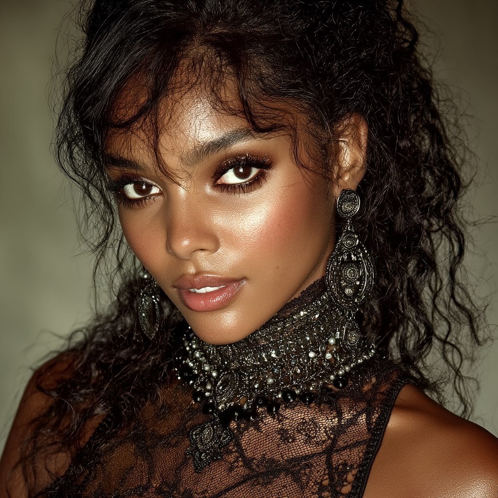 Создано на основе запроса: create a realistic African American model with tan skin complexion. She has long hair with bouncy curls. She has on glam makeup with long eyelashes. She is dressed to impress for a dinner date. High resolution image. 8k --- Автоперевод: Создайте реалистичную афроамериканскую модель с коричневой кожей. Как тебе такая генерация? 🤔 https://dzen.ru/id/65c0c65c86e4f837c27b24d7 #ИИ #AI #нейросеть #midjourney #art