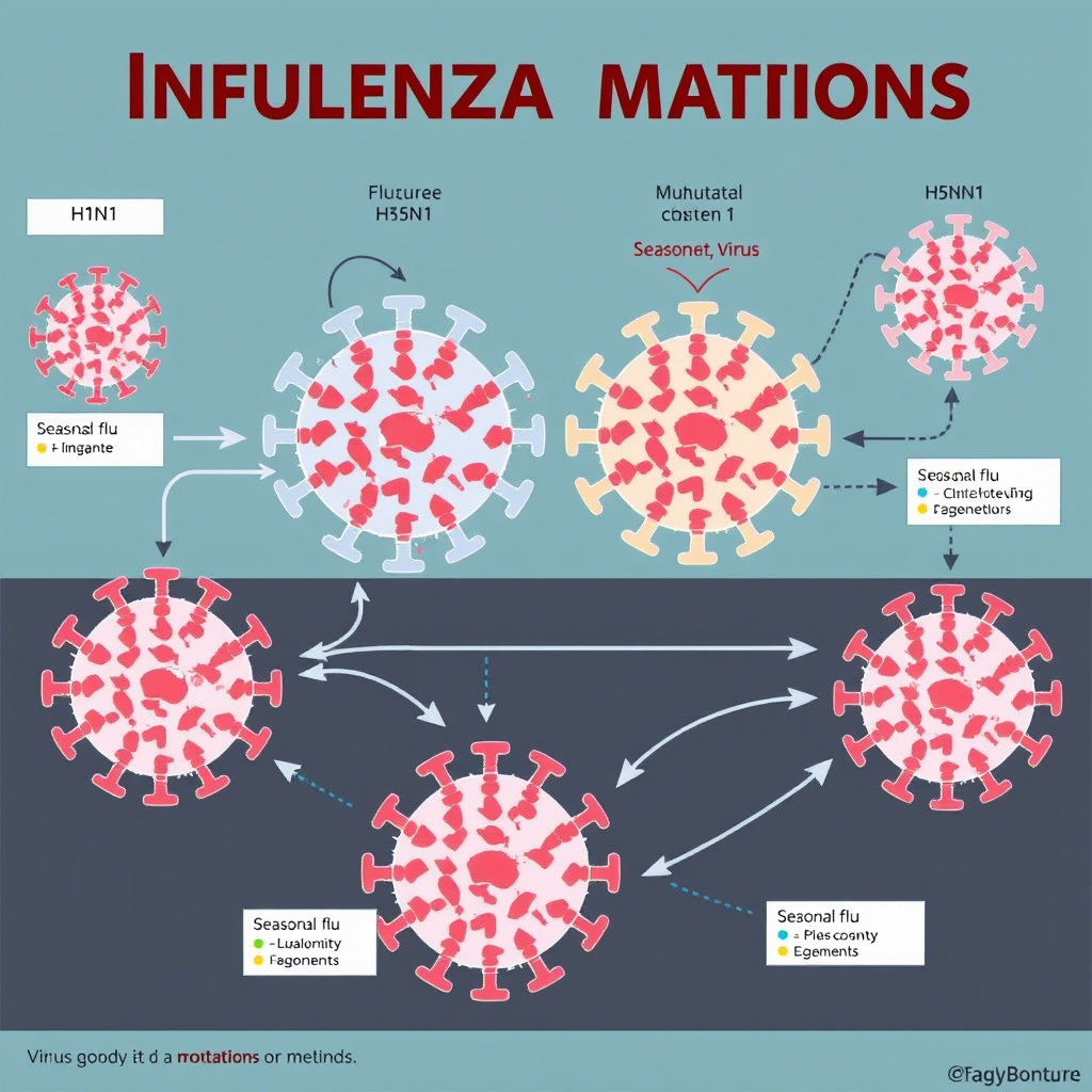 Вирус гриппа размножается в клетках хозяина, используя собственную РНК-полимеразу, которая часто ошибается. Эти ошибки приводят к мутациям. Кроме того, реассортация генов происходит, когда разные штаммы гриппа одновременно инфицируют одну клетку (например, у свиней или птиц). Так возникают «гибриды» с новыми свойствами, способные поражать людей.