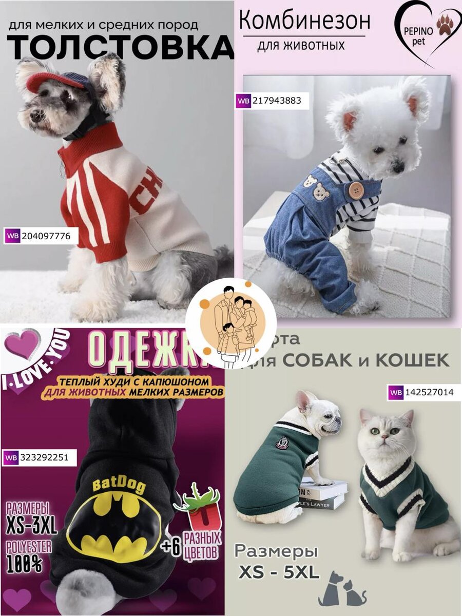Не будем забывать про наших четвероногих друзей! 🐾 Как говорил известный писатель К. С. Льюис: "Собака — это единственное существо на земле, которое любит тебя больше, чем себя". 🤩 Для собак выбирайте уютные свитера и куртки, которые защитят их от холода во время прогулок. Яркие цвета и веселые принты сделают вашего пса настоящей звездой на улице! 🤩 Кошки тоже заслуживают стильных нарядов! Легкие костюмы и забавные аксессуары, такие как бантики или шляпки, добавят игривости в их образ. Такие модные луки питомцев легко впишутся в вашии овседневные образы и, конечно, будут легко сочетаться с нашими подборками! ✔️ Такая семейная прогулка точнет тронет сердца прохожих💔 Создавайте незабываемые образы для своих любимцев и делитесь с ними радостью модных приключений! 🙈🙉🙊 📌 Бэтмэн 323292251 📌 Свитера 142527014 📌 Красный бомбер 204097776 📌 Комбинизон с мишкой 217943883