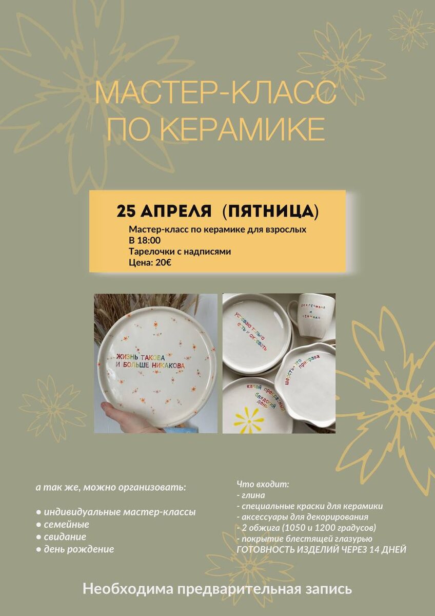 Всем привет! На этой неделе планируется только один мастер-класс по керамике в г.Петровац, Если будет желание посетить лепку из глины в другие дни - пишите😉