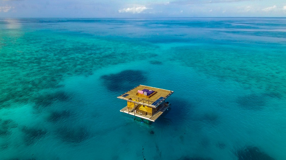 📌 Стикер: 🔹 "Отель-мечта для дайверов" 🌊 Что особенного: Вилла "Мурака" с подводной спальней и ванной на глубине 4 метра. Окна-купола дают обзор 180°.