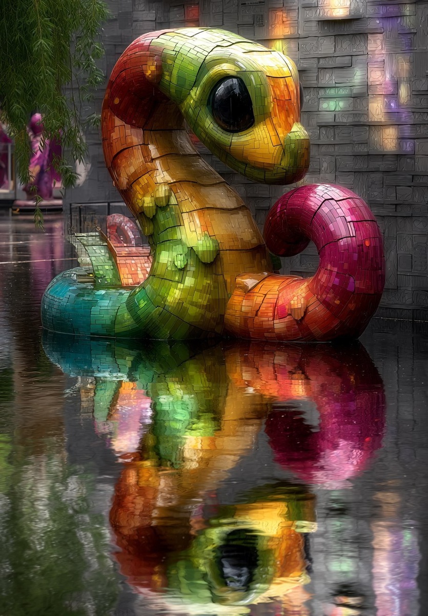 Создано на основе запроса: Where's the Loch Ness monster? In a large kiddy pool a pixilated and colorful Loch Ness Monster raises its and playfully gazes around with its large reflective eyes, --- Автоперевод: Где Лох -Несс Монстр? Как тебе генерация? 🤔 https://dzen.ru/id/65c0c65c86e4f837c27b24d7 #ИИ #AI #нейросеть #midjourney #art