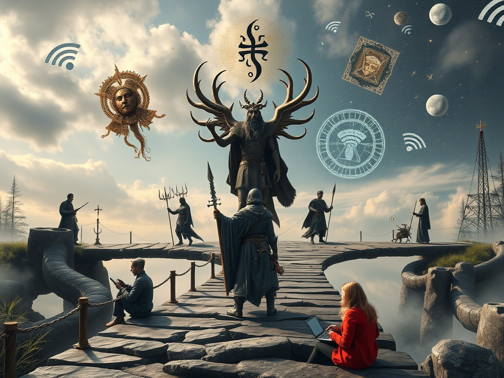 «Три мира древних славян: Как языческие корни прорастают в эпоху Wi-Fi» Почему мы до сих пор бросаем монетки в фонтаны, носим обереги и говорим «тьфу-тьфу»? Как деление мира на Правь, Явь и Навь объясняет нашу тягу к балансу между Instagram и тишиной леса? Философское путешествие от капищ до кофеен. Пролог: Дерево, которое помнит всё Представьте дуб. Его корни уходят в Навь — мир предков и тайн. Ствол стоит в Яви — здесь и сейчас. А крона тянется к Прави — небу законов и идеалов. Так древние славяне видели мироздание. И сегодня, спустя века, мы всё так же ищем опору в корнях, даже если вместо дуба — бетонный небоскрёб. Глава 1. Третичность: Когда три лучше, чем один Правь, Явь, Навь — не сказка, а система координат — Правь — мир богов и порядка. Современный аналог: правила дорожного движения, законы физики и внутренний голос, говорящий: «Так нельзя».