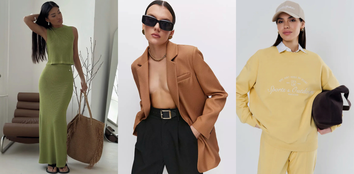 Весна и лето 2025 обещают стать настоящим раем для любителей моды, представляя нам множество ярких и стильных образов, идеальных для повседневной носки. В этом сезоне на платформе Wildberries можно найти разнообразие трендов, от романтичных нарядов до спортивного шика, что позволит каждому подобрать что-то по своему вкусу. В нашей статье мы рассмотрим самые актуальные модные образы, которые помогут вам выделяться в любой ситуации и оставаться в тренде. Будьте готовы вдохновиться и создать свой неповторимый стиль на каждый день этого солнечного сезона! Это стильный и яркий образ, сочетающий в себе элементы летней свежести и осеннего шика. Зеленый летний костюм состоит из макси-юбки и топа, что придает легкость и воздушность. Коричневый оверсайз-пиджак добавляет контраст и уют, свободно накрывая наряд. Коричневые кожаные мюли на каблуке добавляют элегантности и утонченности, а кожаная сумка в тон завершает образ практичным акцентом. Зеленые серьги в форме сердец придают завершающий штрих