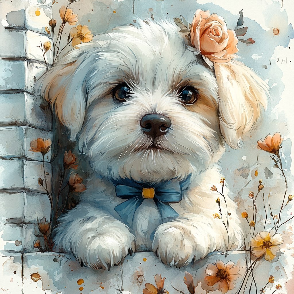 Создано на основе запроса: a dreamy watercolor illustration of a very cute groomed white furry puppy with bow on head, looking over white brick wall,, tender moments, add roses and small white flowers, colors powder blue, soft peach white and creme, white background, --- Автоперевод: Мечтательная акварельная иллюстрация очень милого ухоженного белого пушистого щенка с луком на голове, оглядываясь на белую кирпичную стену, нежные моменты, добавить розы и маленькие белые цветы, цветы пудры синий, мягкий персик белый и крем, белый фоно Отлично вышло? 🤔 https://dzen.ru/id/65c0c65c86e4f837c27b24d7 #ИИ #AI #нейросеть #midjourney #art