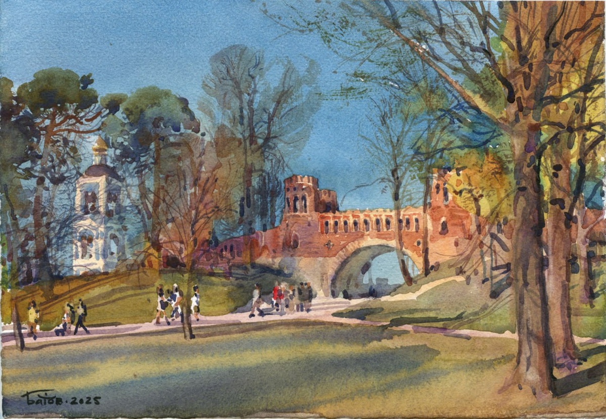 20250418 Царицыно / Tsaritsyno Park. Moscow / 21x30 / plein air watercolor. Краски Pinax Extra. Бумага "Палаццо" хлопок 300гр. #Pinax_Extra #palazzo_watercolor_paper #urbansketchers #пленэр #акварель #этюды #watercolor #АкварельнаяМосква #WatercolorMoscow #pleinair_russia