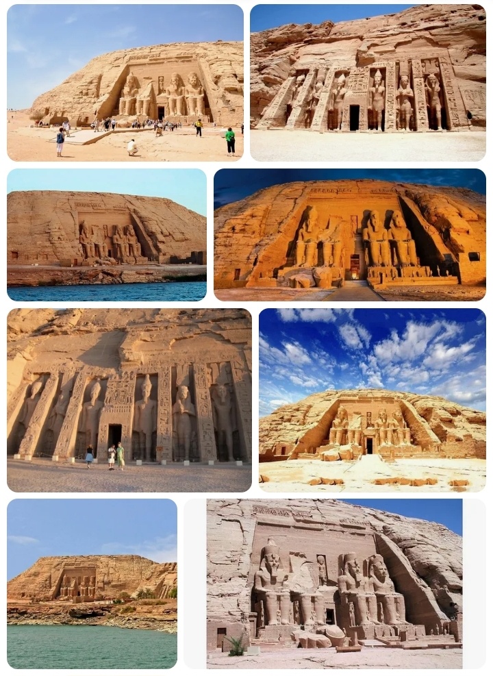 Абу-Симбел - скала на западном берегу Нила в которой высечены два древнеегипетских храма. Находятся в Нубии, в 285 км. южнее Асуана, близ современной египетско-суданской границы. Комплекс состоит из двух храмов: 1. Большой. Построен в честь фараона Рамсеса ll и посвящен богам Амону, Ра Хорахти и Птаху. 2. Малый. Воздвигнут в честь первой жены Рамсеса ll, царици Нефертари Меренмут, и посвящен богине Хатхор.