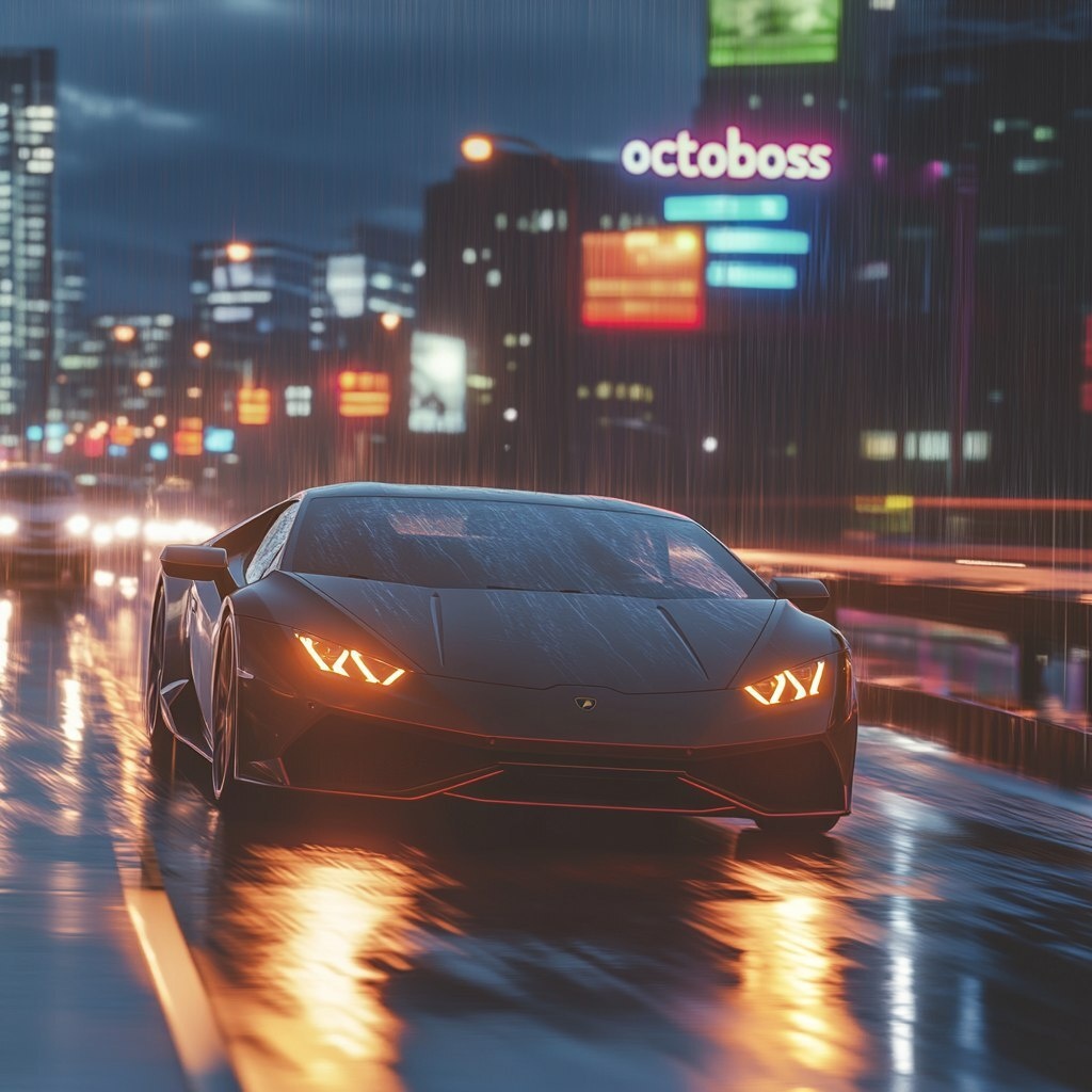 Создано на основе запроса: Ultra-realistic Lamborghini Huracan speeding on a wet highway at dusk, slight tire smoke, driver gripping wheel tensely, raindrops on windshield, neon city lights reflecting on hood, low-angle shot from front bumper, motion blur on background, 8K photorealism, cinematic tension "octoboss" --- Автоперевод: Ультрареалистичный Lamborghini Huracan, ускоряющийся на влажном шоссе на сумерках, легком дыме шин, напряженном колесе для водителя, каплях дождя на ветровом стекле, неоново-городские огни, отражающие на капюшоне, сног с переднего бампера, размытие движения на фоне, 8 тыс. Фотореализм, кинематографическое натяжение "Octoboss". Интересно получилось? 🤔 https://dzen.ru/id/65c0c65c86e4f837c27b24d7 #ИИ #AI #нейросеть #midjourney #art