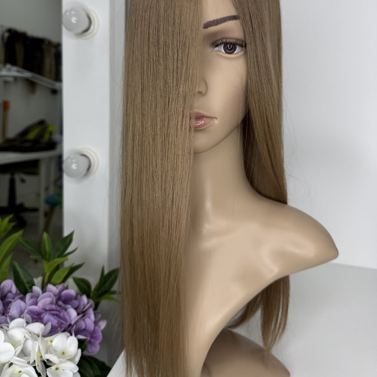 Накладка из натуральных волос. Русая с холодным оттенком. 51 см. Вес 96 гр. В наличии накладка из натуральных волос. Длина волос 51 см. Вес 96 гр. С имитацией кожи головы в зоне пробора (шелковая вставка). Волос 100% натуральный, премиум качества, фабрично-окрашенный, без обработки силиконом. Структура - прямой, гладкий. Цвет - русый с холодным оттенком. Основа из швейцарской сеточки 13*16 см. Тамбуровка двойным узлом. Фиксация с помощью 5 заколочек. Изготовлена вручную постижёрами мастерской Алины Сокол (РФ, г.Краснодар). Ручная работа значительно увеличивает срок службы такого изделия и позволяет достичь непревзойденного комфорта в носке. Перед использованием требуется адаптационная стрижка, можно сделать челку. Пробор меняется во влажном состоянии волос. Волос натуральный и заминается при транспортировке - после получения увлажните волосы и сделайте нужную укладку. Цвет: Русый Длина волос: 51 см Структура волоса: Гладкие Тип волос: Прямые Вес изделия: 96 гр Стоимость: 97 000 руб.