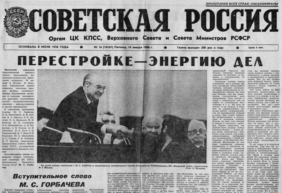 С приходом к власти Михаила Горбачёва в середине 1980-х годов началась эпоха гласности, что стало основой для ослабления цензуры. Горбачёв заявил, что одной из ключевых целей его реформ является разрешение людям открыто обсуждать проблемы. Это позволило освободить прессу, выпустить более разнообразные мнения и позволить людям более свободно выражать свои взгляды на социально-экономические вопросы. Однако даже при Горбачёве цензура не исчезла полностью, и многие темы оставались под запретом. Постепенно начали появляться независимые СМИ, которые начали работать в условиях расширенной свободы, обсуждая ранее запрещенные вопросы, такие как экологические проблемы, забастовки и политические репрессии. Однако процесс либерализации был медленным, и многие важные вопросы оставались под контролем. После распада Советского Союза в 1991 году свобода прессы значительно расширилась, но влияние советской цензуры продолжало ощущаться. Многие журналисты сохранили привычку работать в условиях самоцензур