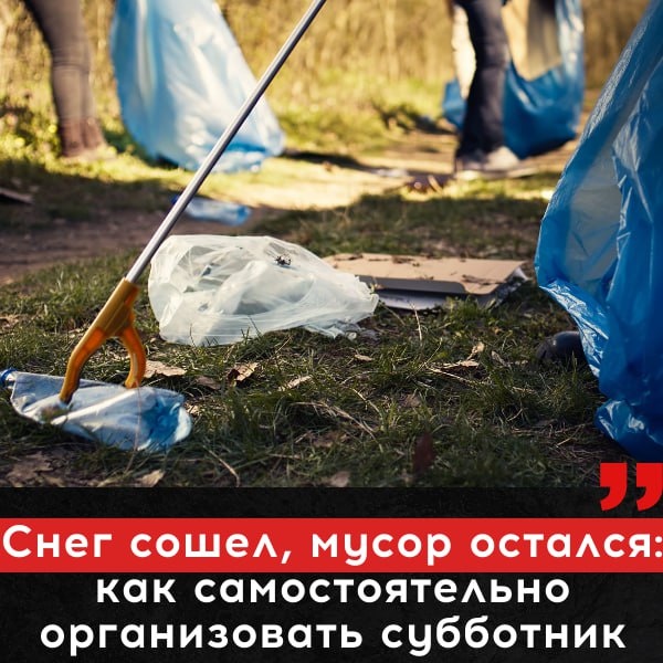 Снег сошел, мусор остался: как самостоятельно организовать субботник 🧹Апрель в разгаре, а это значит, самое время задуматься о субботниках. В России принято проводить общественные уборки в назначенный день - Всероссийский субботник. В этом году он выпадает на 26 апреля. Обычно, администрации муниципалитетов и управляющие компании уведомляют жителей о назначенном субботнике заранее, подгатавливают инвентарь и план уборки. Но если вы заметили, что ваш двор субботник обошел стороной, а мусора и грязи вокруг только добавилось, можно организовать уборку самостоятельно. Для этого стоит придерживаться простых рекомендаций: ✔️Территория, на которой планируется субботник, обычно принадлежит муниципалитету. Поэтому нужно заранее поставить в известность городскую или районную администрацию, написав ей уведомительное письмо за 3-4 недели до мероприятия. ✔️Чтобы привлечь жителей на субботник, стоит использовать все возможные каналы коммуникации. Разместите объявления на подъездах, напишите в о