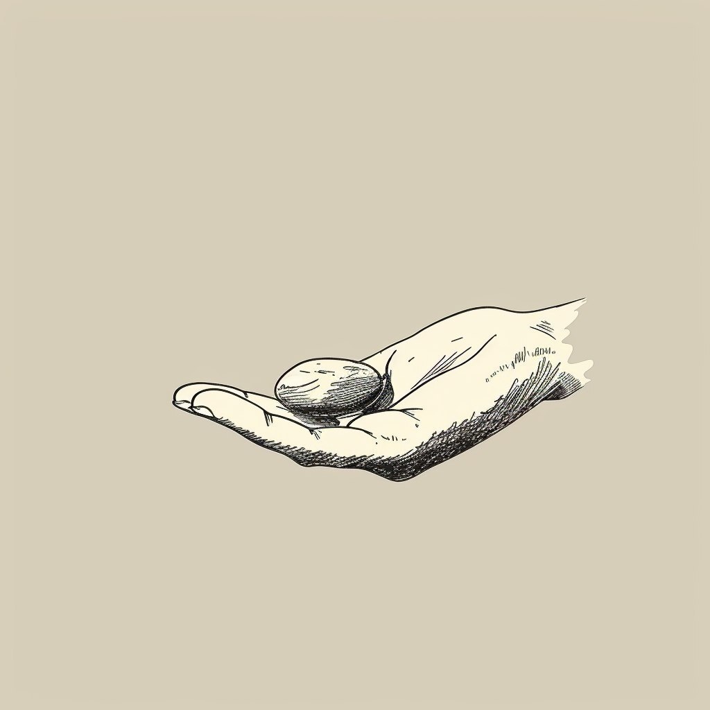 Создано на основе запроса: a conceptual minimalist sketch of a hand with only two fingers touching a pebble gently, logo-style illustration