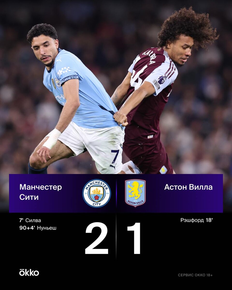 Нуньеш тащит «Ман Сити» в ЛЧ! Важнейшая победа на «Этихаде» ⚽️ «Горожане» поднялись на третье место, а «Вилла» осталась седьмой. Вот такая плотность за еврокубки в АПЛ 🫨