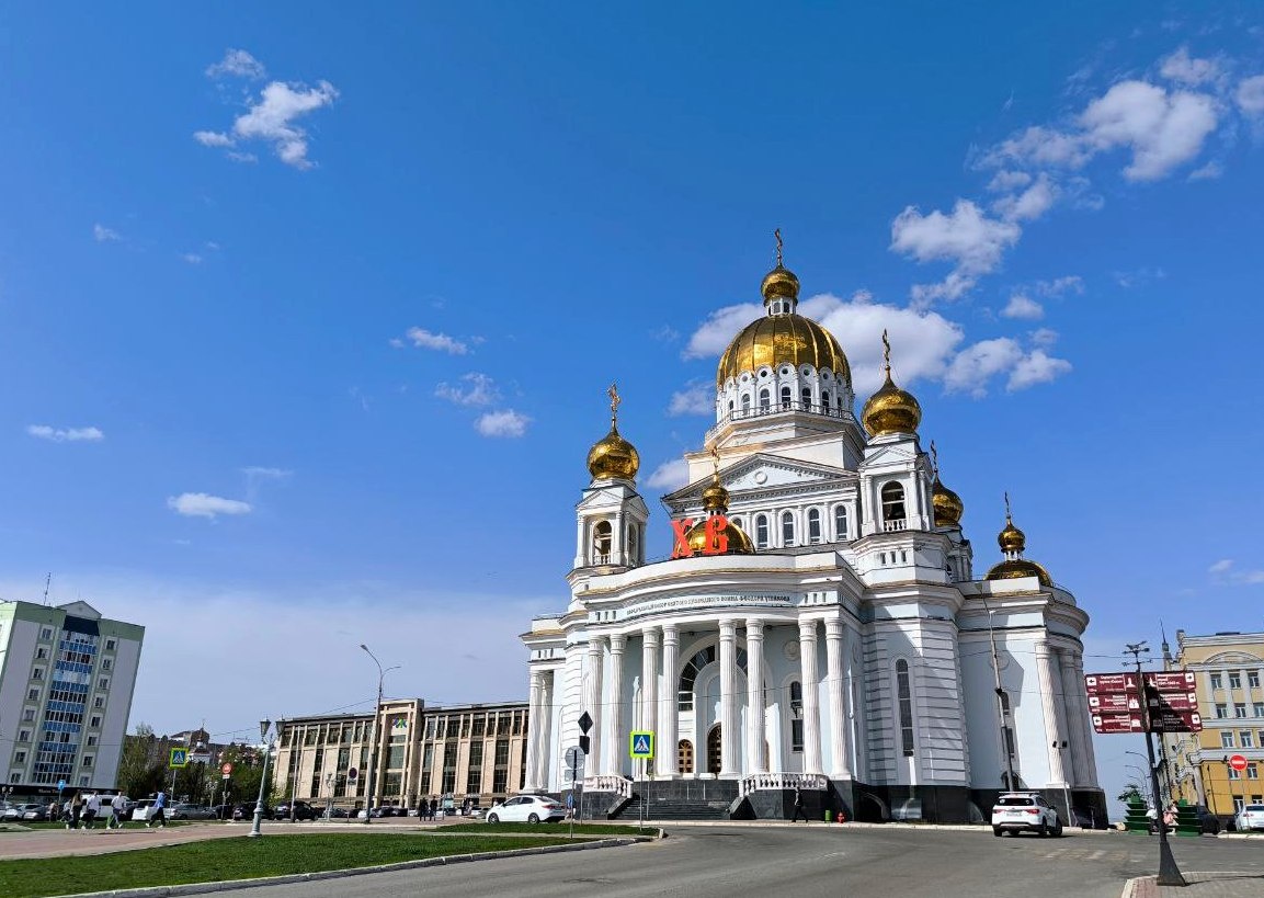 На Пасхальной неделе, она же Светлая седмица, есть традиция – пускать на колокольню мирян. Любой человек может подняться и позвонить. Это такая пора, когда колокольный звон можно услышать в неурочное время, без богослужения. Колокола звонят непрерывно, возвещая о победе жизни над смертью. А на самих церквях – и больших, и маленьких храмах - вывешены буквы Х В. Христос Воскрес. Такие буквы - и на Кафедральном соборе святого праведного воина Феодора Ушакова. И на храме Успения Пресвятой Богородицы. И на всех других церквях.