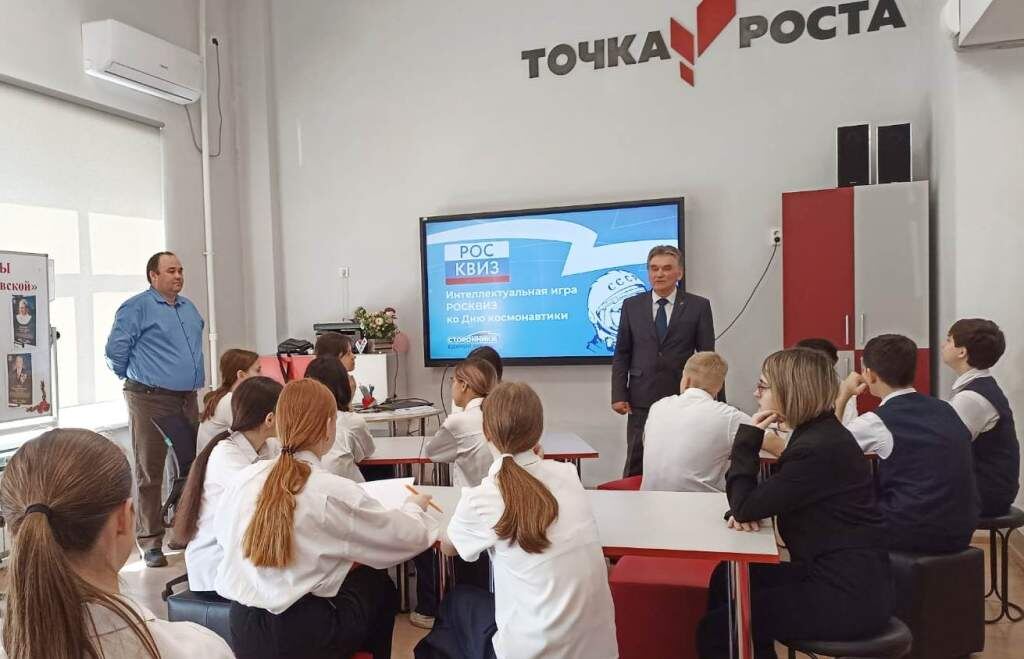 В Багаевской школе №2 состоялся местный этап интеллектуальной игры «РосКвиз» В мероприятии, которое было посвящено Дню космонавтики и прошло в рамках проекта сторонников партии «Единая Россия», приняли участие девятиклассники под руководством учителя физики Дмитрия Лавриненко. «Цель РосКвиза — популяризация изучения космонавтики и астрономии среди молодёжи в увлекательной и непринуждённой форме. Мы также стремимся повысить интерес молодого поколения к научным открытиям и истории России в области космонавтики», — отметил во вступительном слове исполнительный секретарь Багаевского местного отделения партии «Единая Россия» Сергей Шилов. Дети с интересом просмотрели видеообращение космонавта, Героя России Дмитрия Петелина и приступили к выполнению заданий. Класс был разделён на четыре команды: «Спутник», «Космонавты 1», «Космонавты 2» и «Орбита». В итоге, набрав равное количество баллов, победителями стали команды «Спутник» и «Космонавты 1». Они были награждены вымпелом и Благодарственным