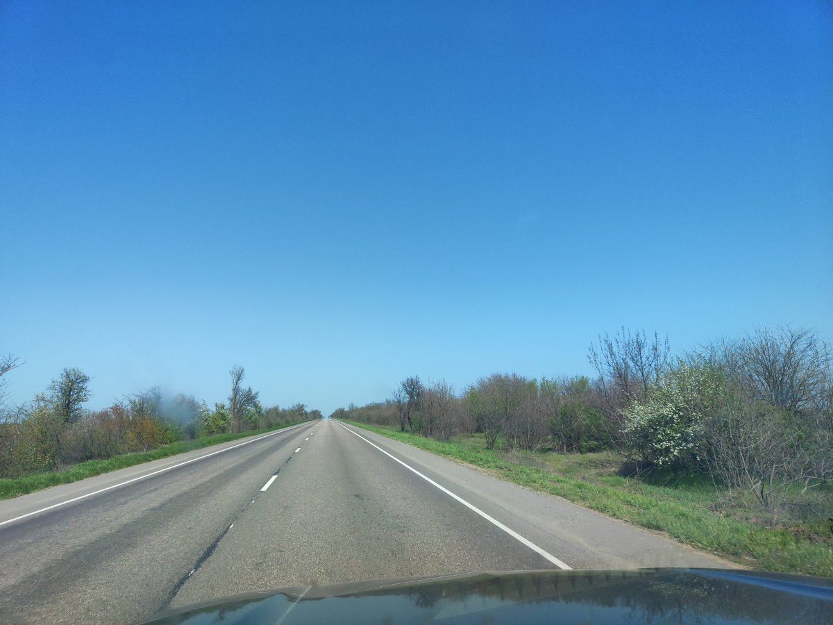 В Пасху в воскресение дорога была пустая и я ехала почти одна. Большую часть дороги я не видела машин. Появлялись они только ближе к городам, например к Мелитополю, в который мы не заезжали и в Мариуполе.