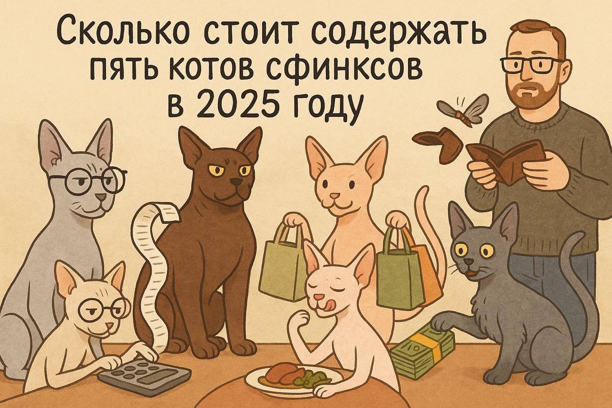 В прошлый раз мы считали расходы на мою банду сфинксов в конце 2023 года. С тех пор многое изменилось: выросли цены в магазинах для людей, выросли цены в магазинах для котов, субъективно кажется, что подорожало все и сильно, но давайте посчитаем. Котов надо вакцин кровать не зависимо от того выходят они на улицу или нет. Решение не из простых: ушёл от импортных вакцин к российским. Импортные уж слишком дорого. Один кот — одна вакцинация в год: от бешенства и комбинированная. Переносится по-разному, без осложнений не обошлось, но все живы. Покупаю препараты в ветаптеке и колю сам. Стоимость на одного кота — около 1000 ₽. Итого в год: 5000 ₽. Сейчас мои коты на корме Acari Ciar для стерилизованных. Хороший корм, но съедается очень быстро: сфинксы — не гурманы, а промышленные пылесосы какие-то. 12 кг уходит за месяц (ну месяц и неделя). Корм с неплохим составом, соотношением микроэлементов и главное он подошел всем. Жирняш сейчас на ветеринарном питании, но это временно и его корм в расч
