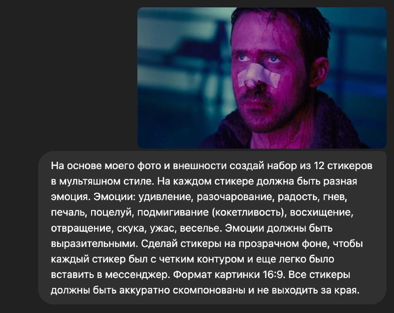 Генерим стикерпак со СВОИМ ЛИЦОМ с помощью ChatGPT — составили для вас простую и понятную инструкцию в три шага: — Заходим в ChatGPT, отправляем своё фото и пишем промт: На основе моего фото и внешности создай набор из 12 стикеров в мультяшном стиле. На каждом стикере должна быть разная эмоция. Эмоции: удивление, разочарование, радость, гнев, печаль, поцелуй, подмигивание (кокетливость), восхищение, отвращение, скука, ужас, веселье. Эмоции должны быть выразительными. Сделай стикеры на прозрачном фоне, чтобы каждый стикер был с четким контуром и еще легко было вставить в мессенджер. Все стикеры должны быть аккуратно скомпонованы и не выходить за края. — Нарезаем полученный PNG на отдельные стикеры; — Заходим в бот... Подробнее: https://hard-tm.su/threads/87299/ 🕹HARD-TM — Подписаться