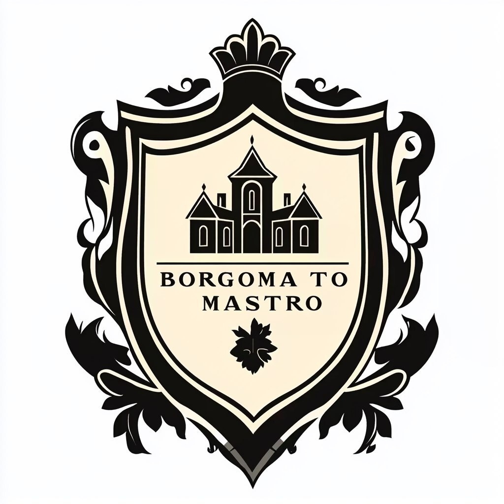 Создано на основе запроса: Faction Symbol, "BORGOMASTRO", Heraldic Shield Style, Village, Smooth Lines, White background, High quality