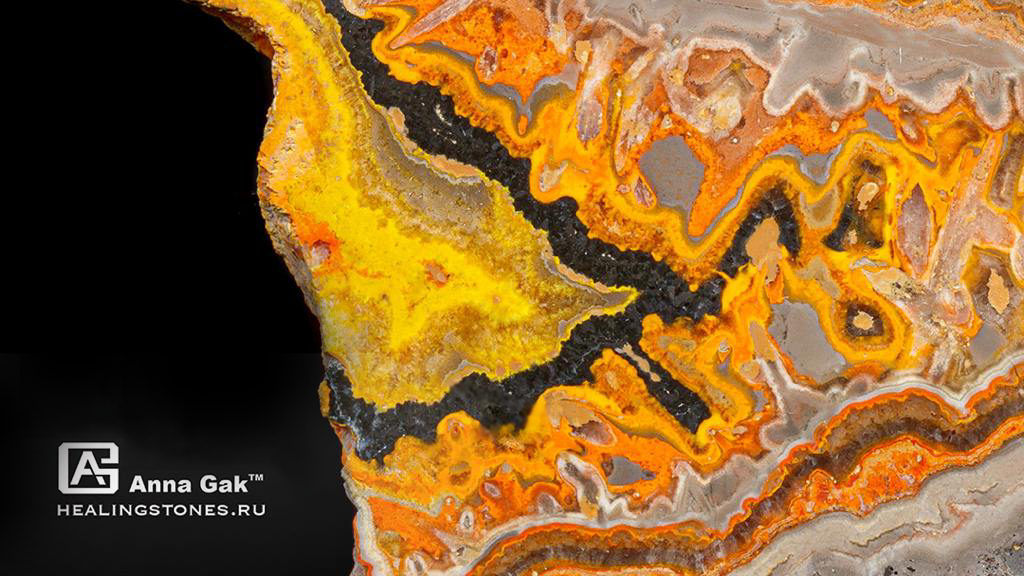 Мышьяк — это, чаще всего, желтые и оранжевые слои. Сера менее токсична, чем мышьяк (а в очень маленьких количествах даже полезна), но при вдыхании может повреждать слизистые. Если камень хорошо отполирован, то носить его безопасно. Избегать: контакта с открытыми ранами и слизистыми (не лизать, не вдыхать пыль, не делать эликсиры, не делать из него яйца для йони, не давать маленьким детям — им в целом лучше никакие камни не давать, которые могут в рот пролезть).