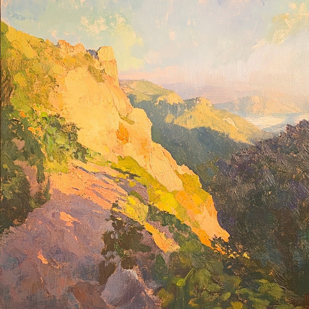 Создано на основе запроса: Lori Putnam Plein air style, looking down on big sur castal scene, distant headlands, golden hour lighting --- Автоперевод: Lori Putnam Plein Air Style, глядя на прибрежную сцену Big Sur, отдаленные мысы, золотой час Классно выглядит? 🤔 https://dzen.ru/id/65c0c65c86e4f837c27b24d7 #ИИ #AI #нейросеть #midjourney #art