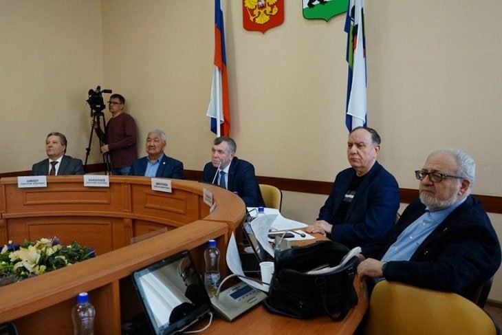 "Кем вы видите себя через 5 лет?" В Иркутске провели собеседования с кандидатами на должность мэра Перед конкурсной комиссией с предвыборными программами выступили пять человек: действующий глава города Руслан Болотов, гендиректор компании «Регион», председатель общественного совета при Восточно-Сибирском ЛУ МВД России на транспорте Антон Егерев, президент Федерации бокса Иркутска Аркадий Журавлев, начальник управления градостроительства, земельных и имущественных отношений администрации Маркова Дмитрий Олейник и пенсионерка Светлана Грабарь. По итогам собеседования все кандидаты получили оценки: Руслан Болотов набрал 150 баллов, Аркадий Журавлев — 128 баллов, Антон Егерев — 100 баллов, Дмитрий Олейник — 67 баллов и Светлана Грабарь — 42 балла. Итоговый рейтинг направили думе города. Окончательное решение по избранию мэра Иркутска представительный орган примет на очередном заседании 24 апреля. Главу города назначат на пятилетний срок. Конкурсная комиссия. Фото пресс-службы думы Ирку