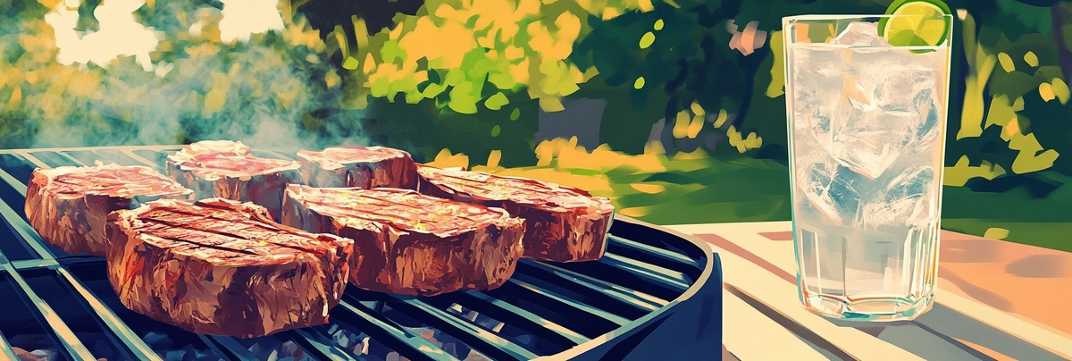 Создано на основе запроса: thick cuts of steaks on the BBQ grill. This is the main focal point. The scene is day time in the backyard. On the table next to the grill is a clear cocktail, with a lime in it. --- Автоперевод: толстые порезы стейков на гриле барбекю. Как тебе такая иллюстрация? 🤔 https://dzen.ru/id/65c0c65c86e4f837c27b24d7 #ИИ #AI #нейросеть #midjourney #art