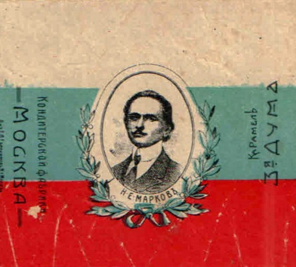 Обёртка для карамели «3-я Дума» с портретом Маркова Второго. 1907—1912