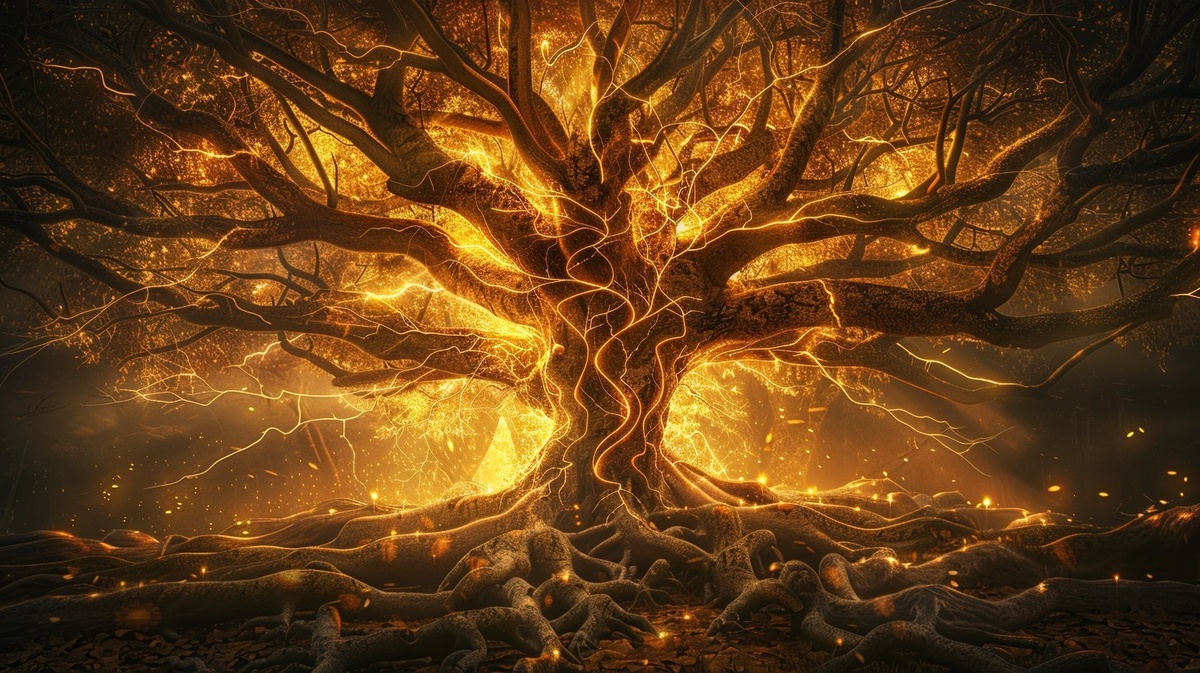 Создано на основе запроса: A majestic family tree with seven distinct branches representing parents and five children of different ages (22, 20, 18, 16, 12), connected by strong roots, golden light emanating from connections, warm amber tones, symbolic elements of guidance and protection, photorealistic rendering, detailed bark texture, 4k, studio lighting --- Автоперевод: Величественное семейное древо с семью отдельными ветвями, представляющими родителей и пятеро детей разных возрастов (22, 20, 18, 16, 12), соединенные сильными корнями, золотым светом, исходящим от связей, теплых янтарных тонов, символических элементов навыка и защиты, фотореалистическое рендеринг, детальная текстура коры, 4K, Студия освещение Какое твое впечатление? 🤔 https://dzen.ru/id/65c0c65c86e4f837c27b24d7 #ИИ #AI #нейросеть #midjourney #art