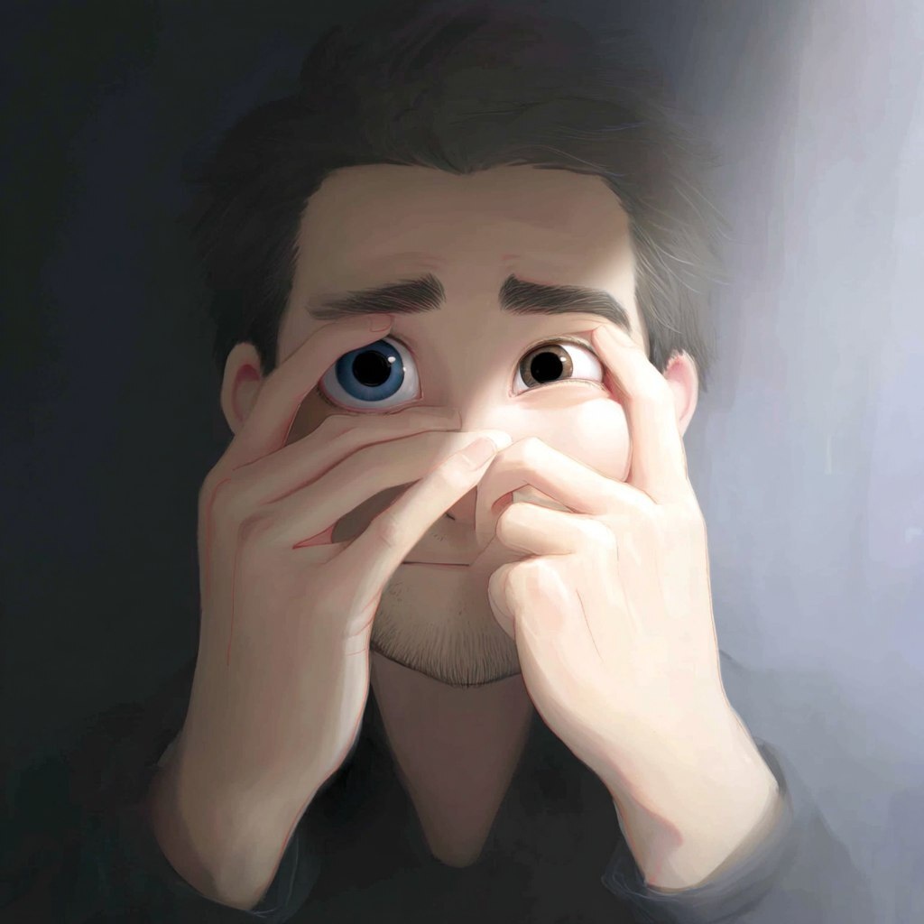 Создано на основе запроса: a man pushing his eyes together to form one big eye
